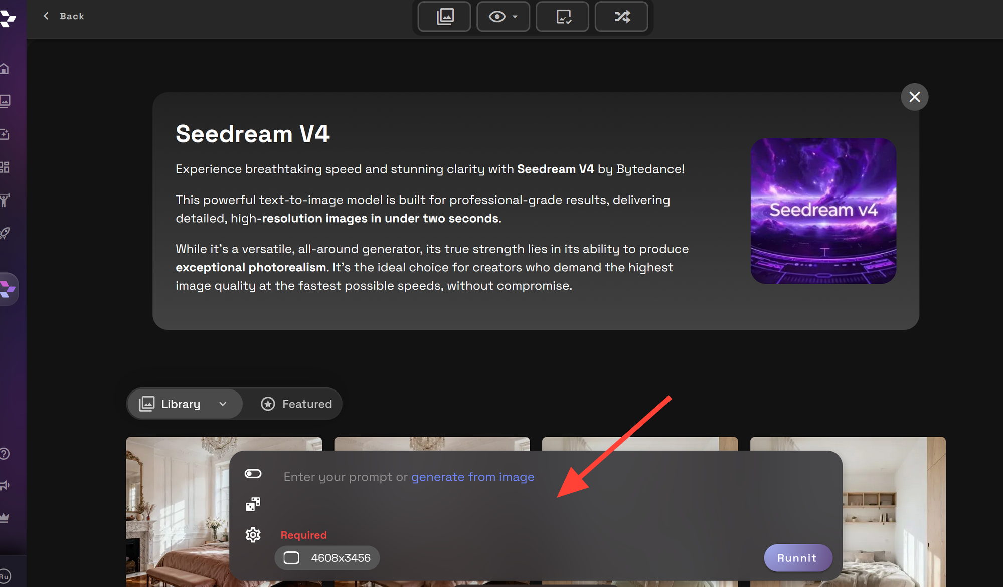 Choose a Model such as Nano Banana or SeeDreamV4. Each model has their own strengths.