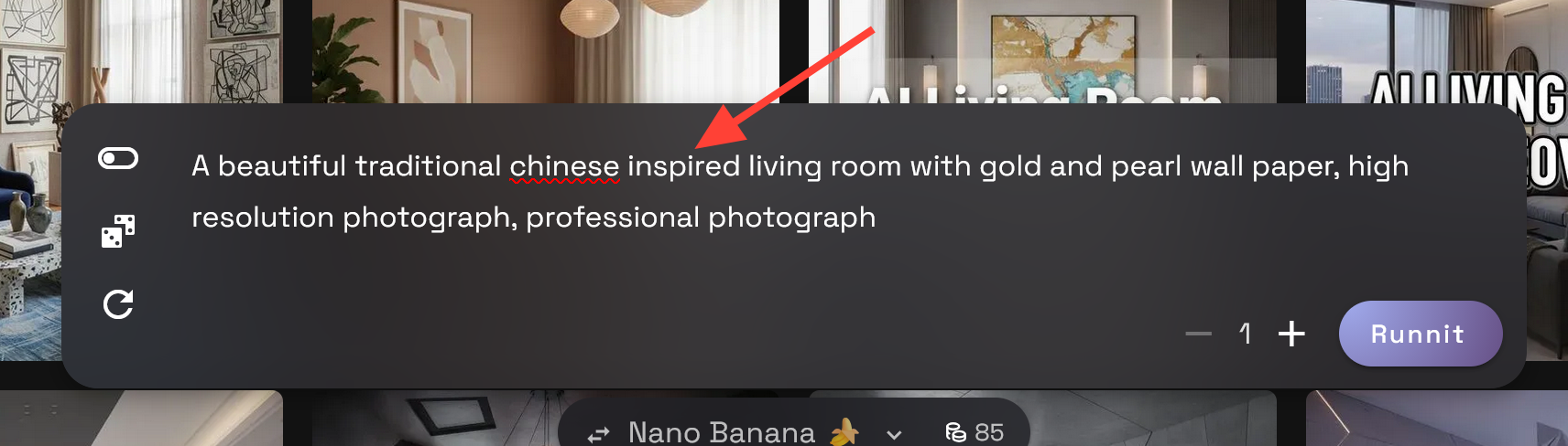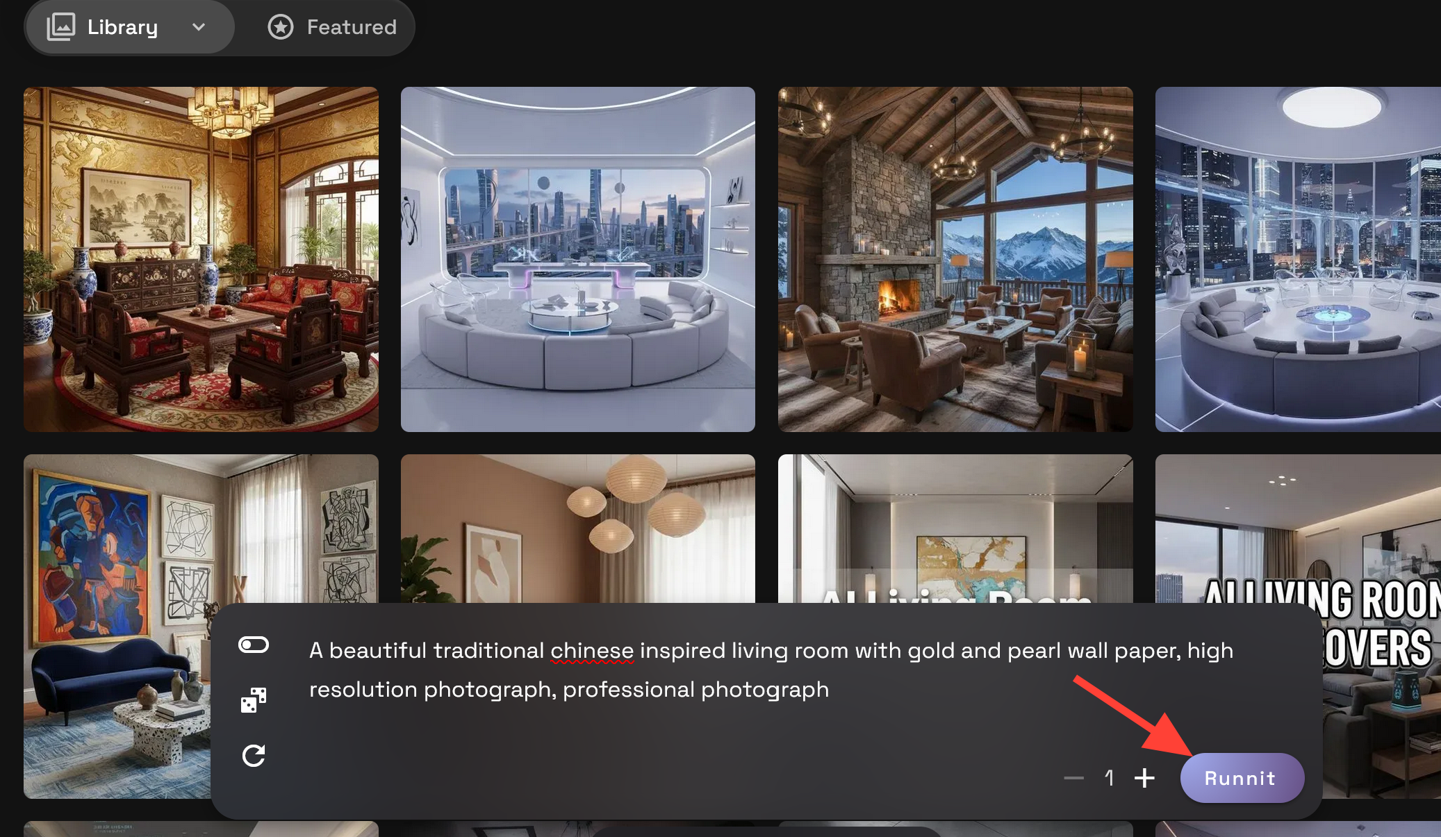 Write a prompt then click Runnit to render the new living room.