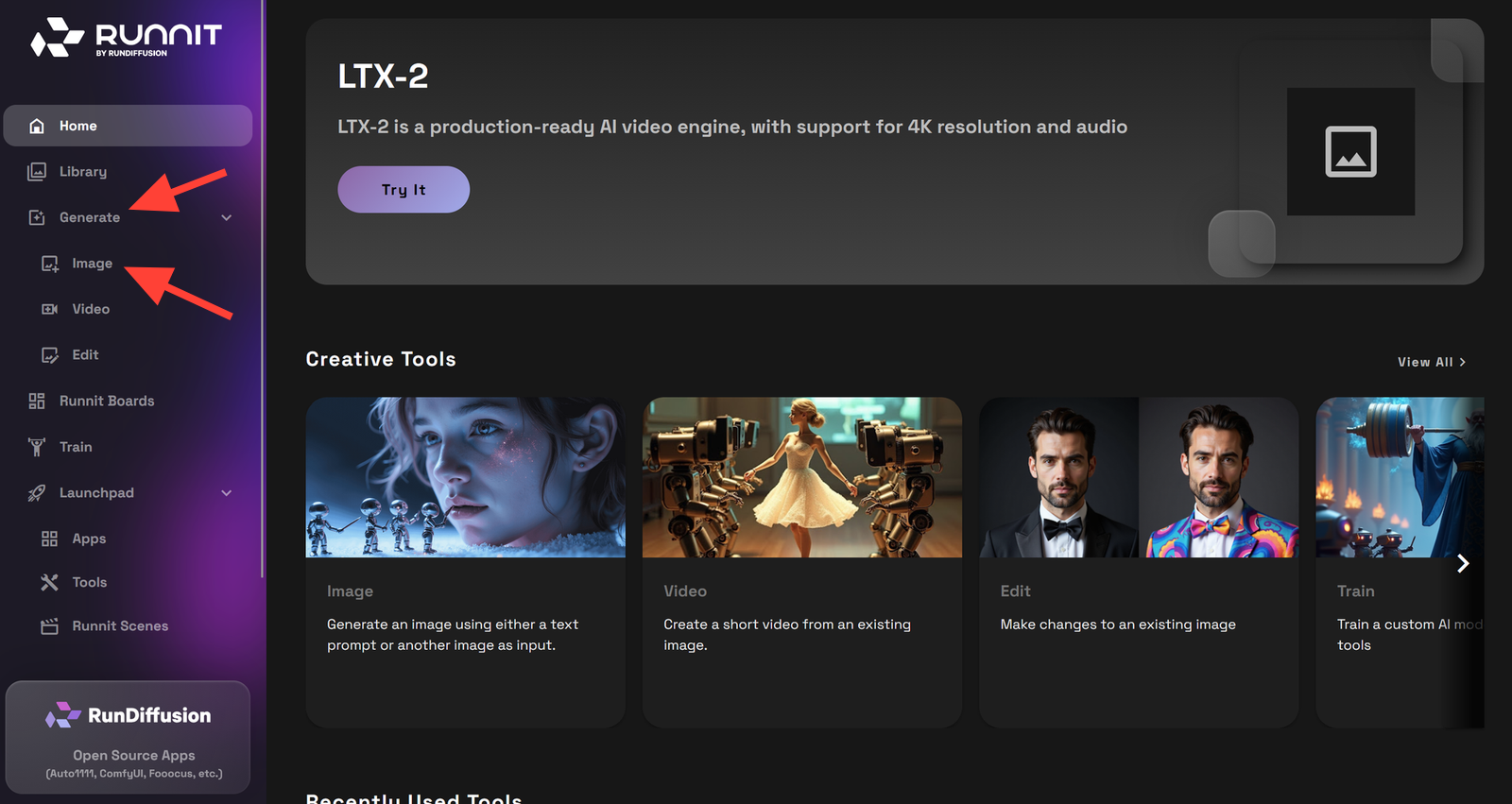 Select Generate and then Image on the left side bar.