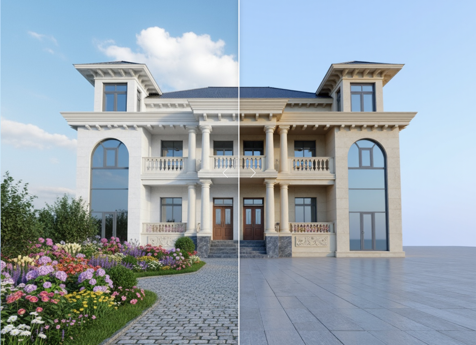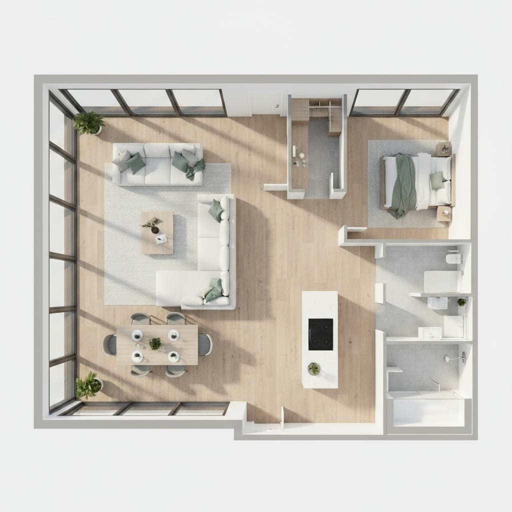 - Before/After renderings (basic layout vs. AI-enhanced render)
