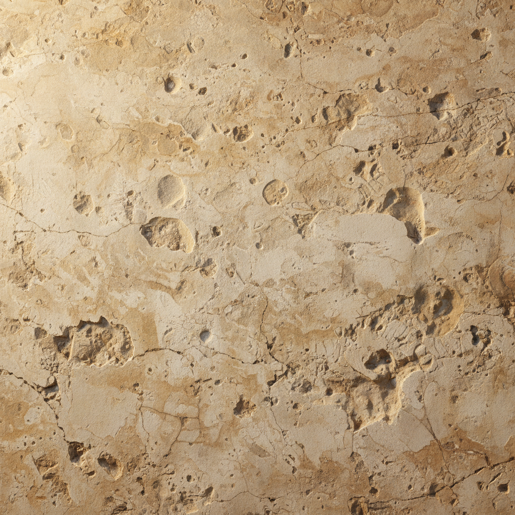 Prompt: Natural limestone cladding wall, aged surface, rough texture, soft shadows