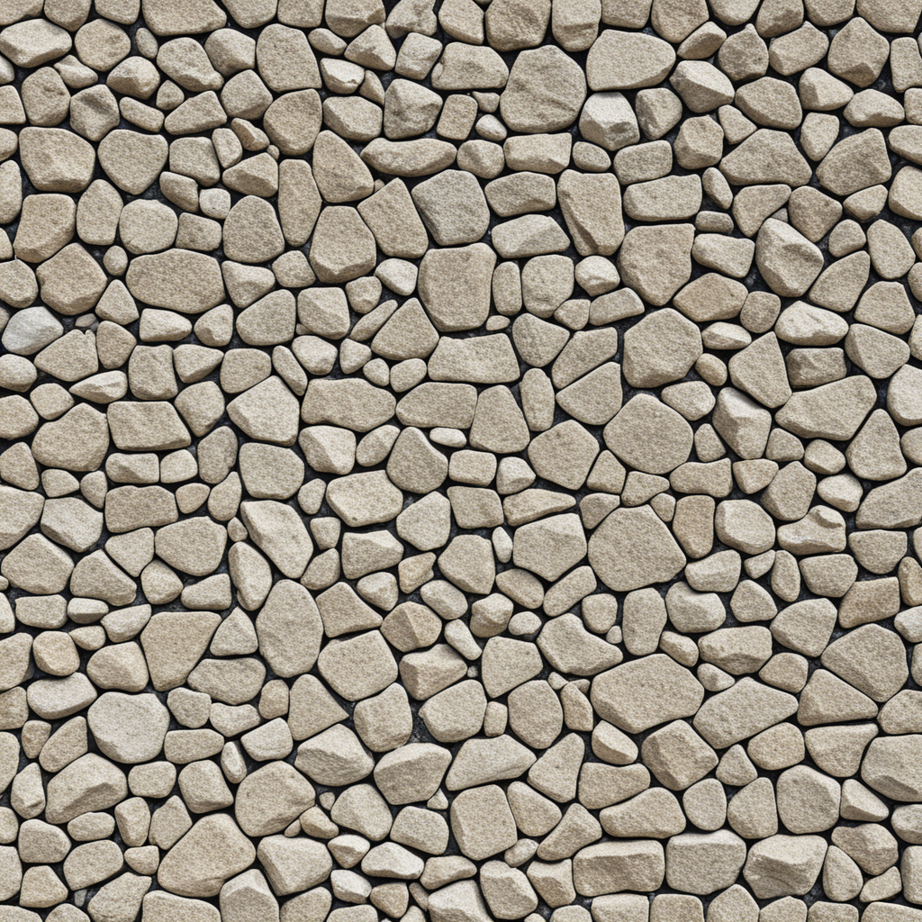 Prompt: Rough aggregate wall, sharp stone texture, dry daylight render