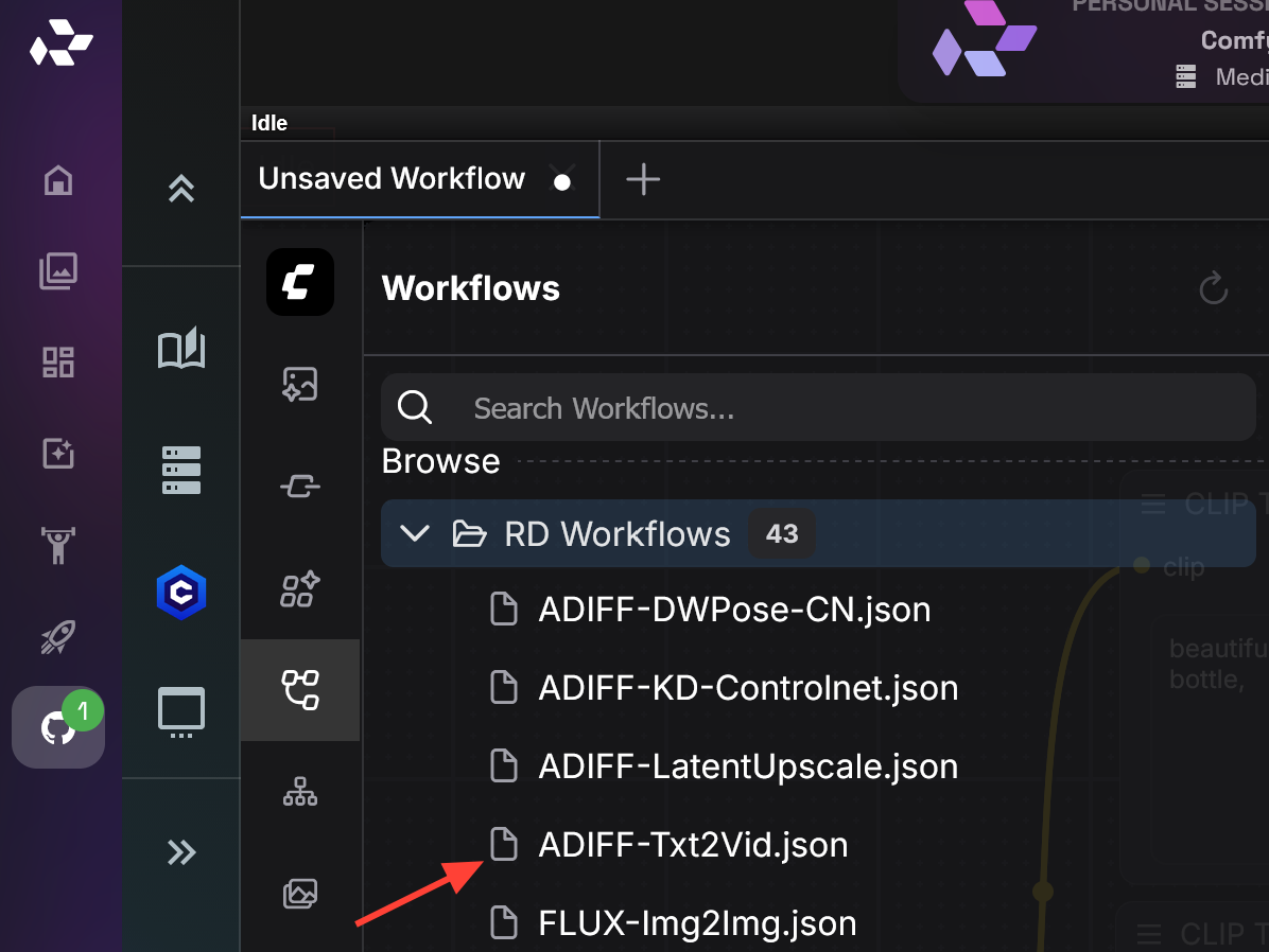 Select AnimateDiff workflow. All the Premade AnimateDiff workflows start with ADIFF.