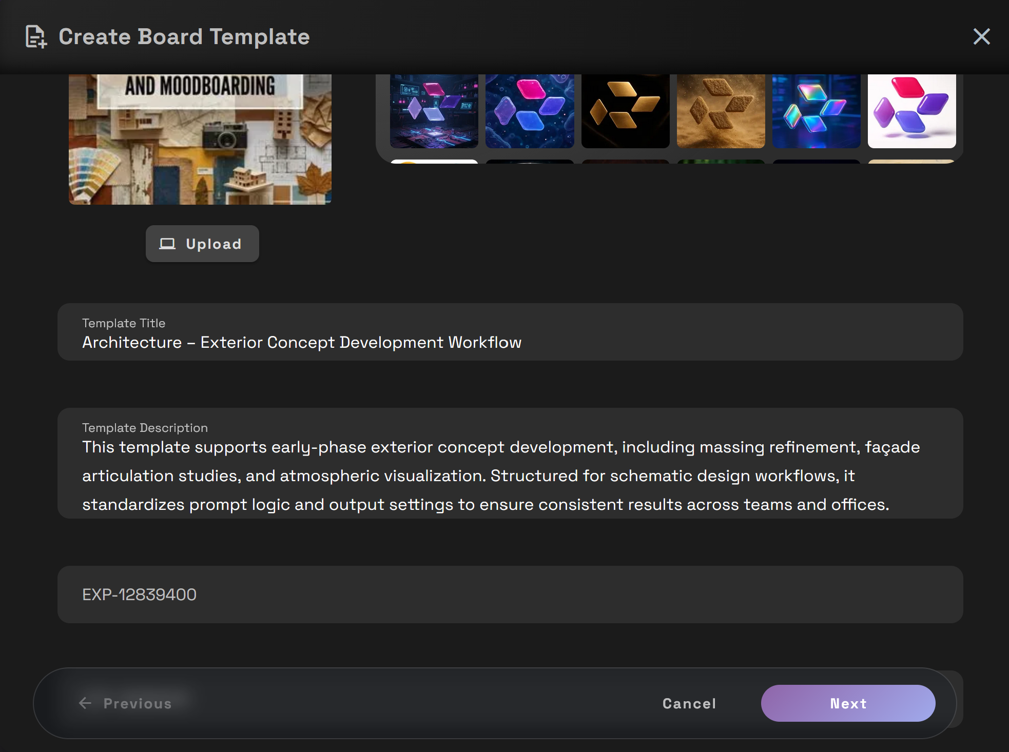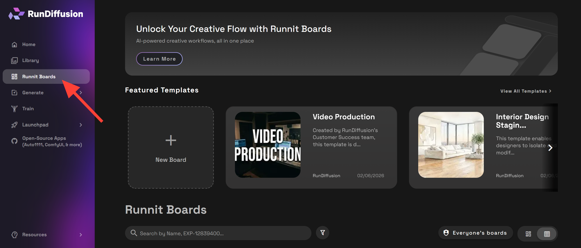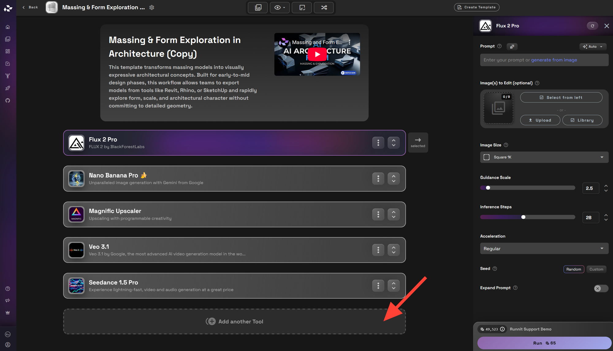 A Featured Template is a prebuilt workflow designed for specific production outcomes such as sketch-to-render, massing exploration, floor plan visualization, or high-resolution presentation imagery. When loaded into Runnit and converted into a Board, it becomes an editable production pipeline for your team.