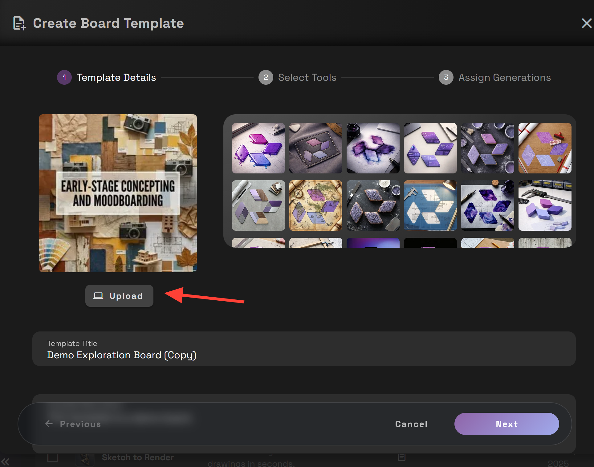 Upload an Image. We suggest images that tell a story or with clear text to help differentiate your templates.