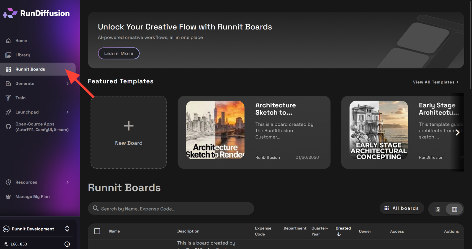 Click Runnit Boards on the left sidebar.
