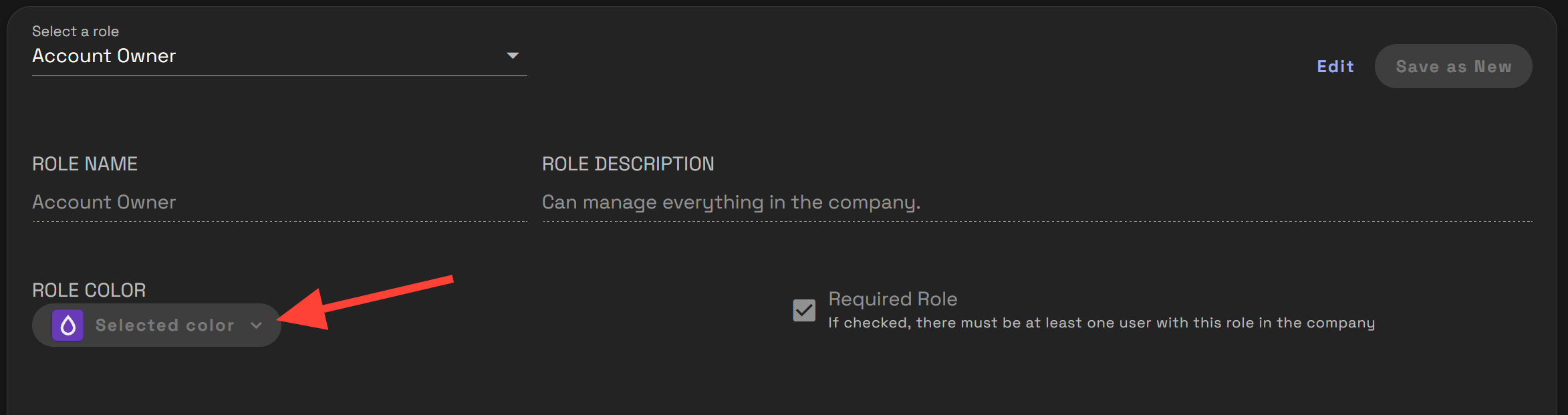 You can add a new Role Name by hovering your mouse over the Role Name field and clicking the X which will delete the old description allowing you to add a custom description.