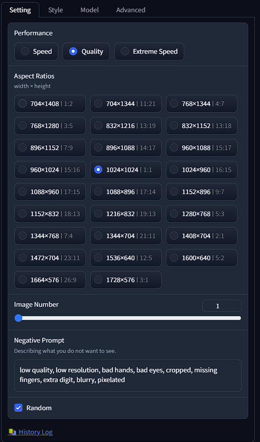 Lastly, is the "random" button. This is for the seed. If unchecked, you will reuse the same seed as the previous generation.