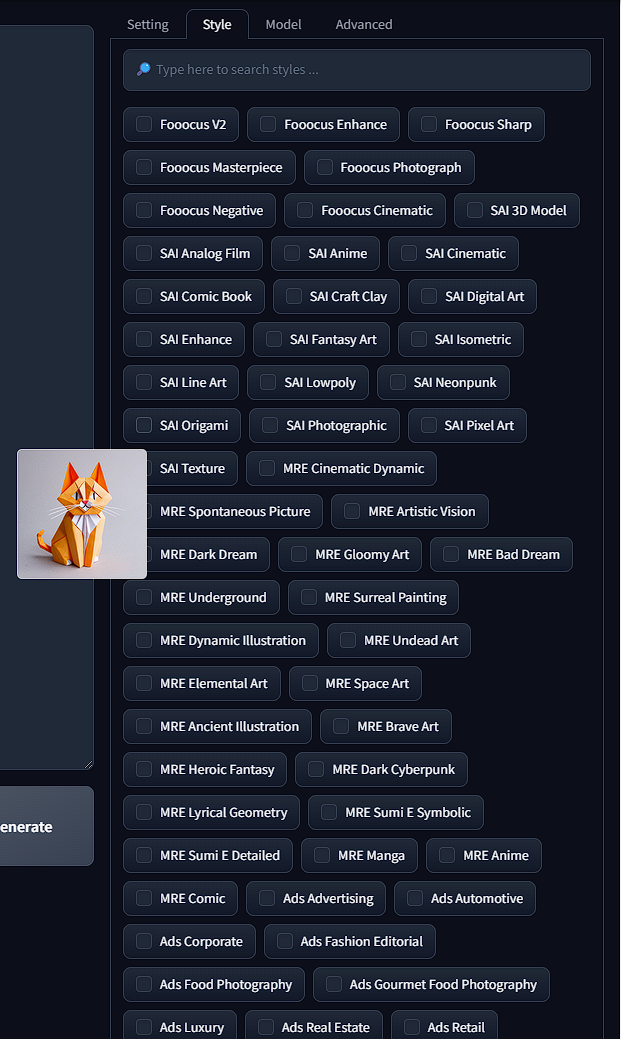 Under setting you can choose the generation process from speed, extreme speed or quality.