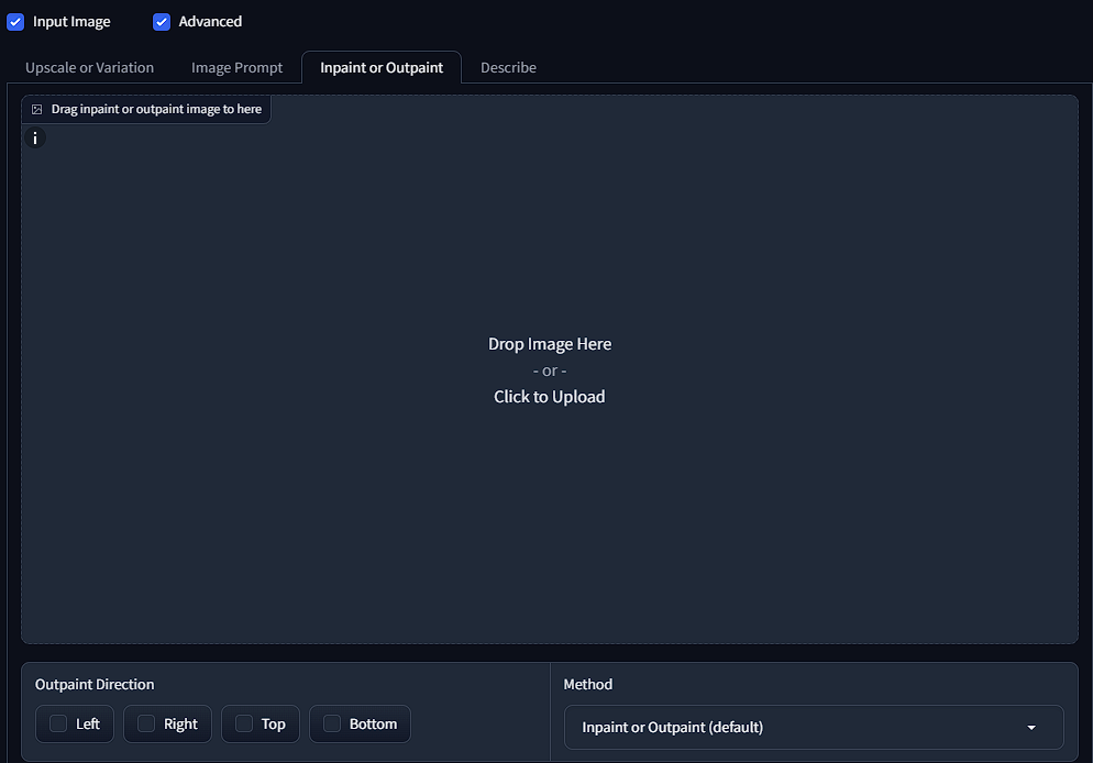 After uploading an image you can outpaint the image by selecting the outpaint direction, along with inputting a prompt above and have fooocus outpaint your photo in selected directions.