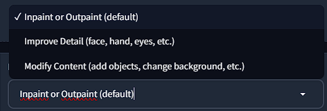 You also have the dropdown box for choosing inpaint/outpaint, improve detail or modifying the content.
