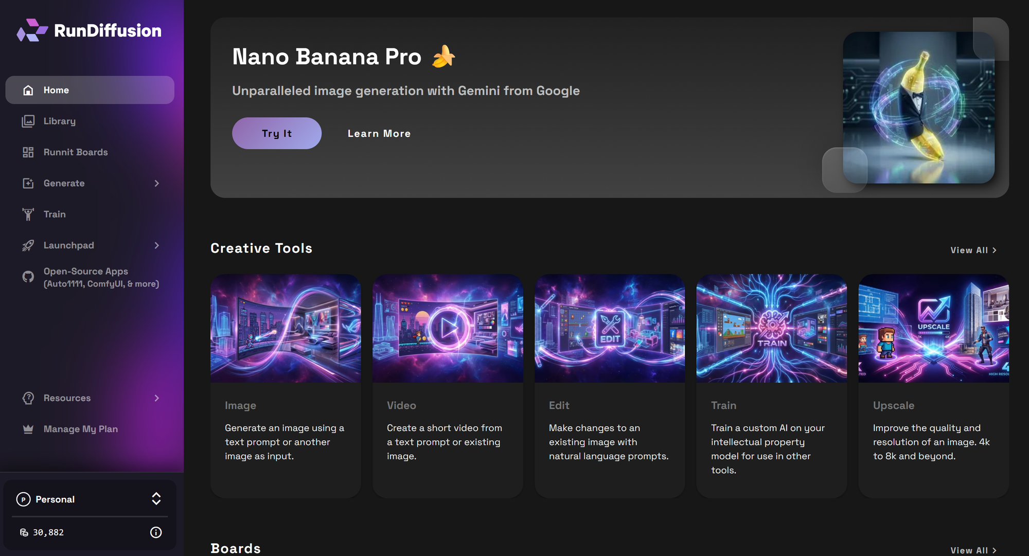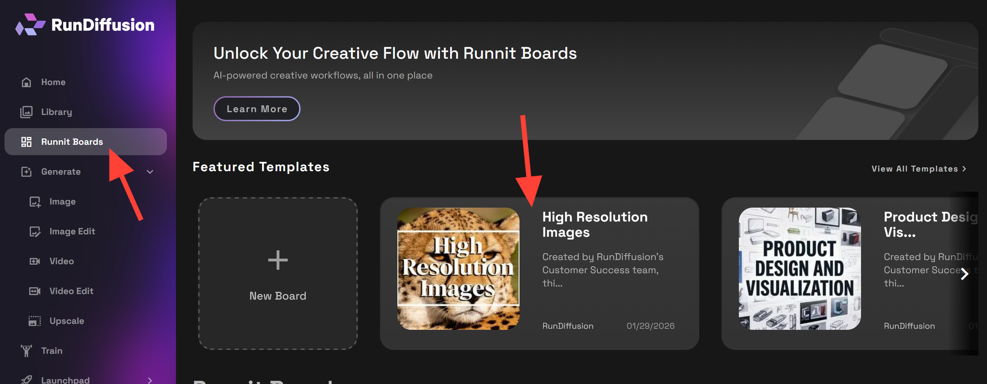 Yes. When creating a board, you can upload your own images or select existing assets from your RunDiffusion library, then refine and upscale them using the included tools.