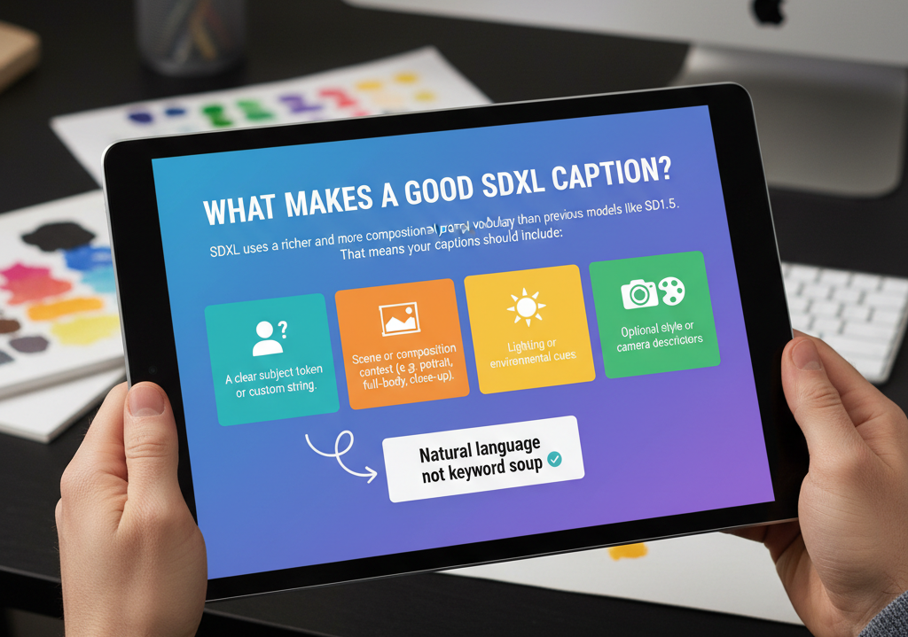 SDXL uses a richer and more compositional prompt vocabulary than previous models like SD1.5. That means your captions should include: