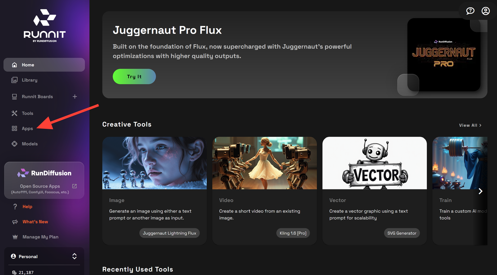 Click on Apps on the left side of the UI