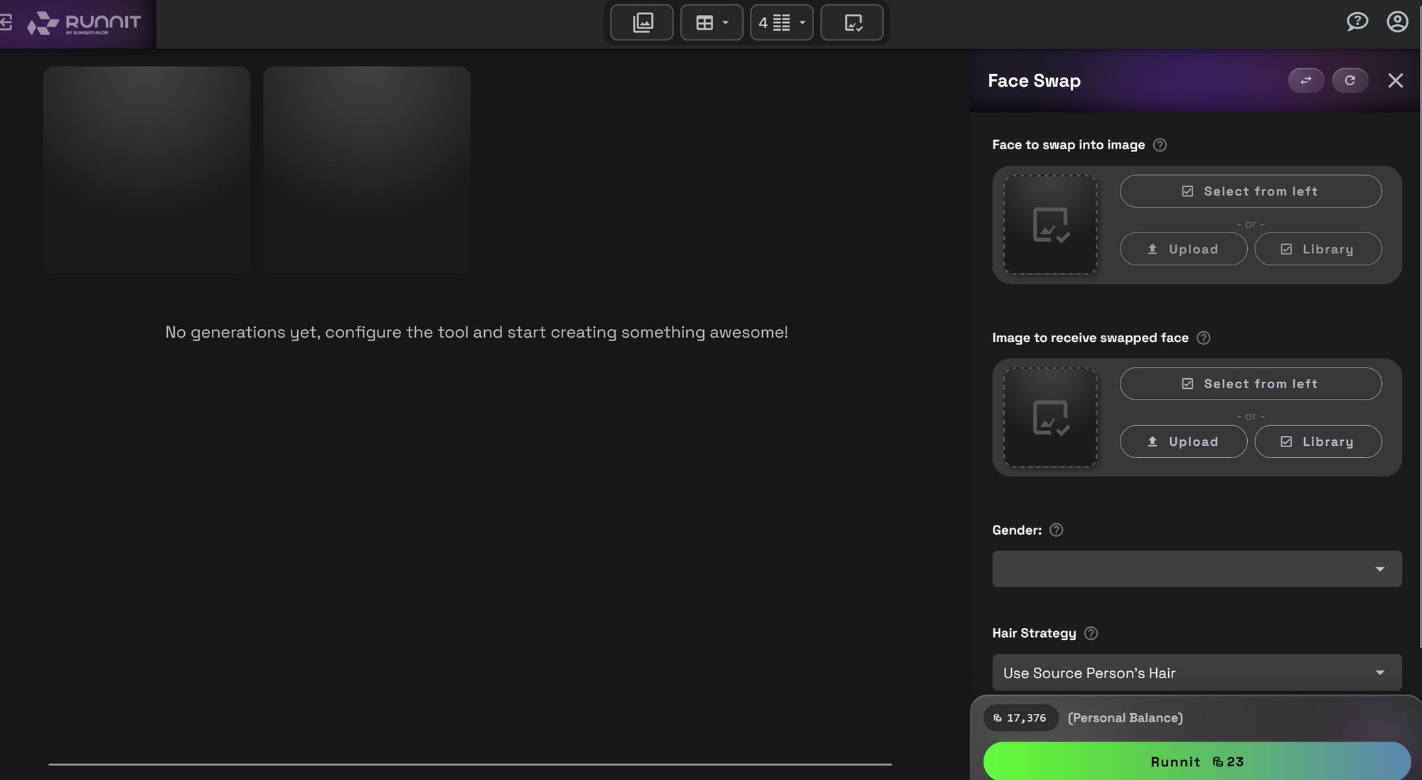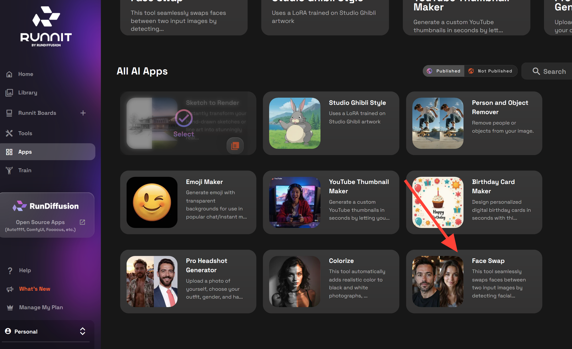 Follow these steps to launch the FaceSwap app on the Runnit platform: