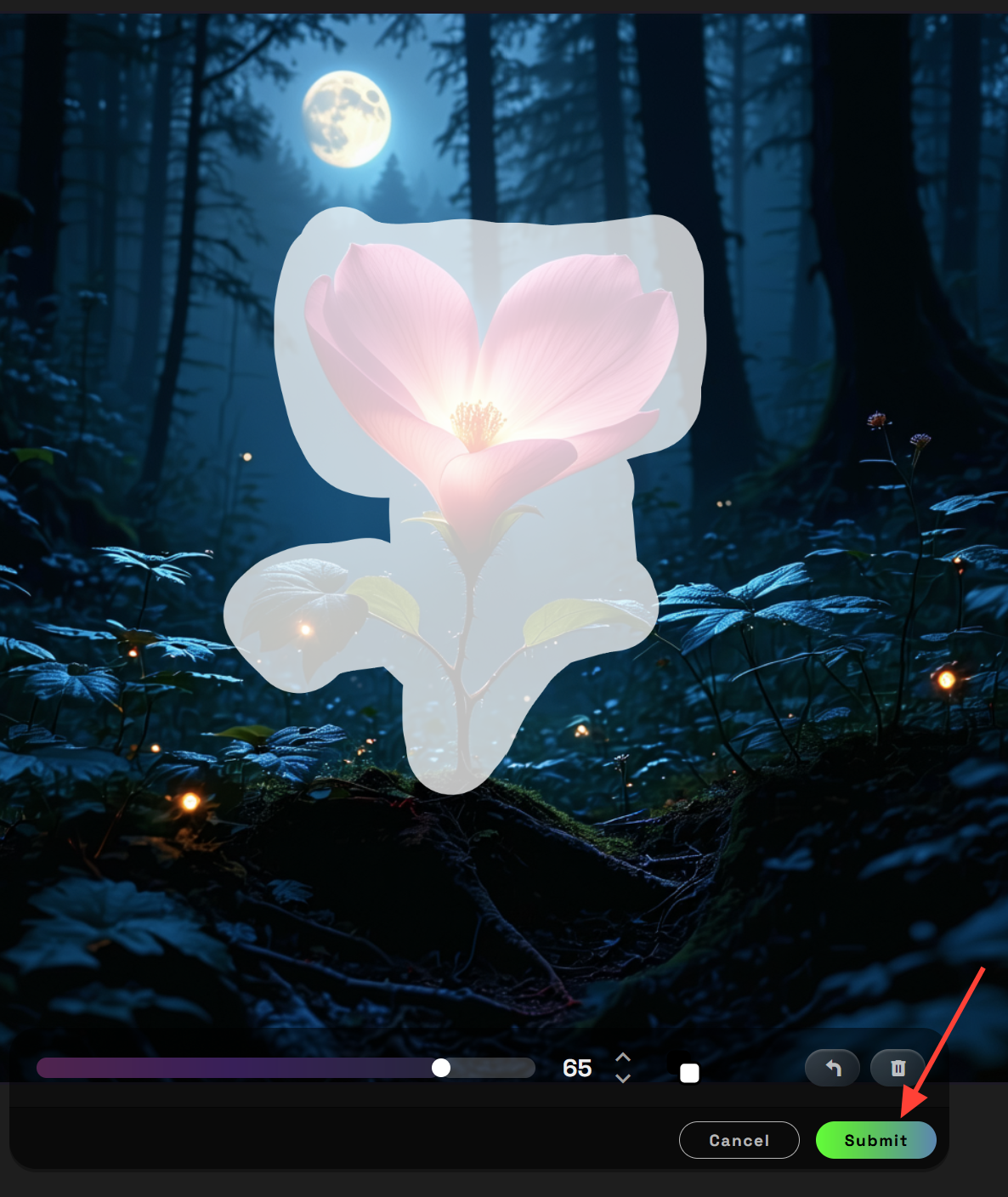 - For this example I am going to select this beautiful flower I created in a forest under the moonlight.