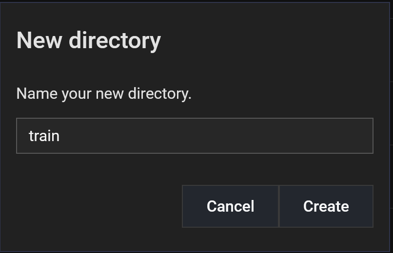 Inside the train folder you can create another folder to upload your dataset which should include images and txt files.