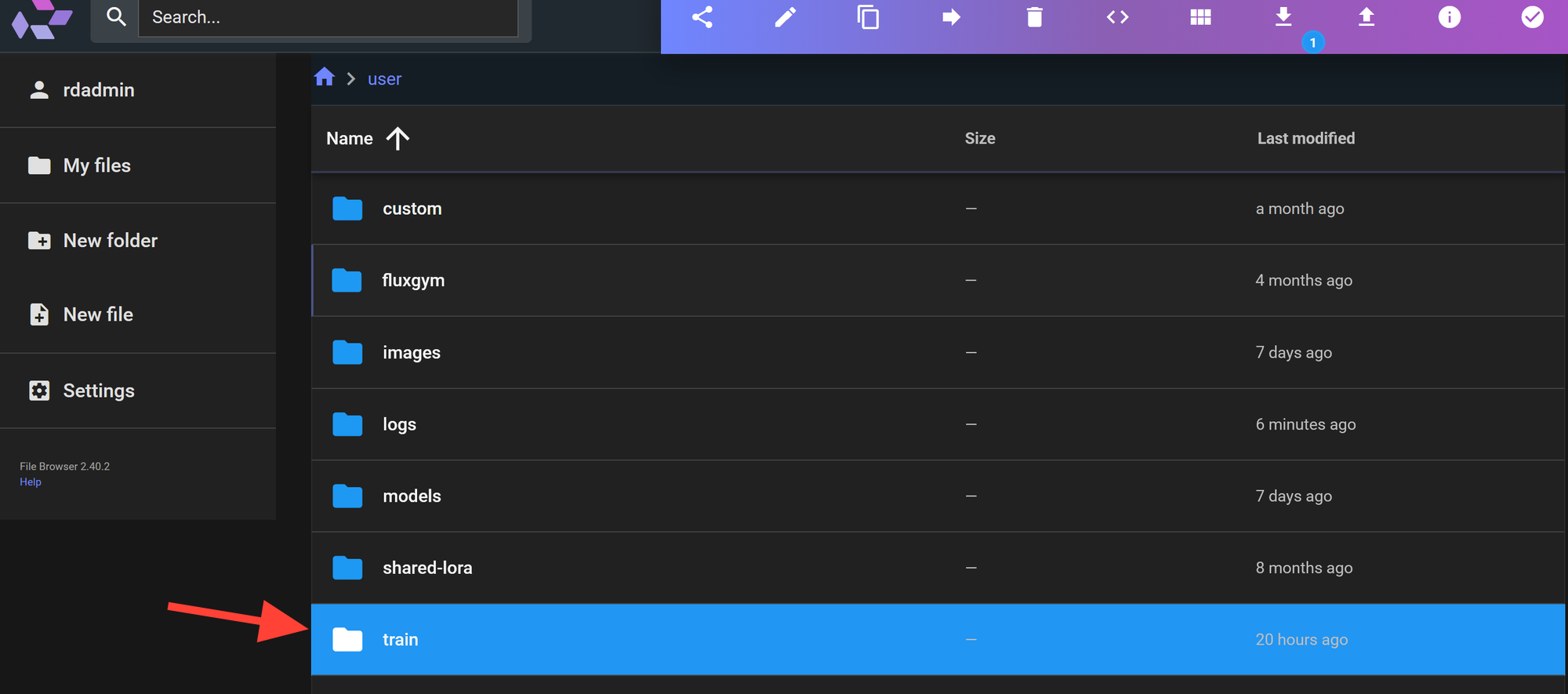 Open the train Folder you just created.