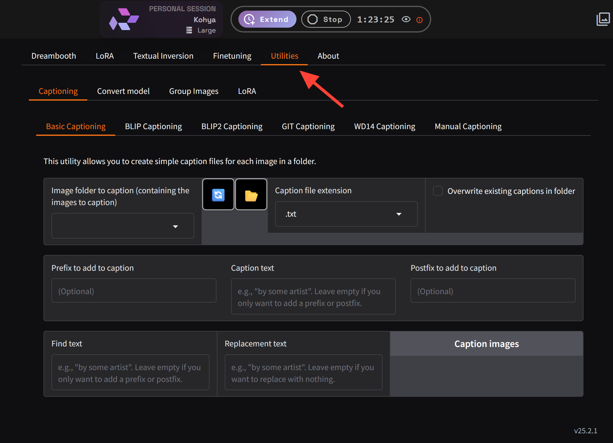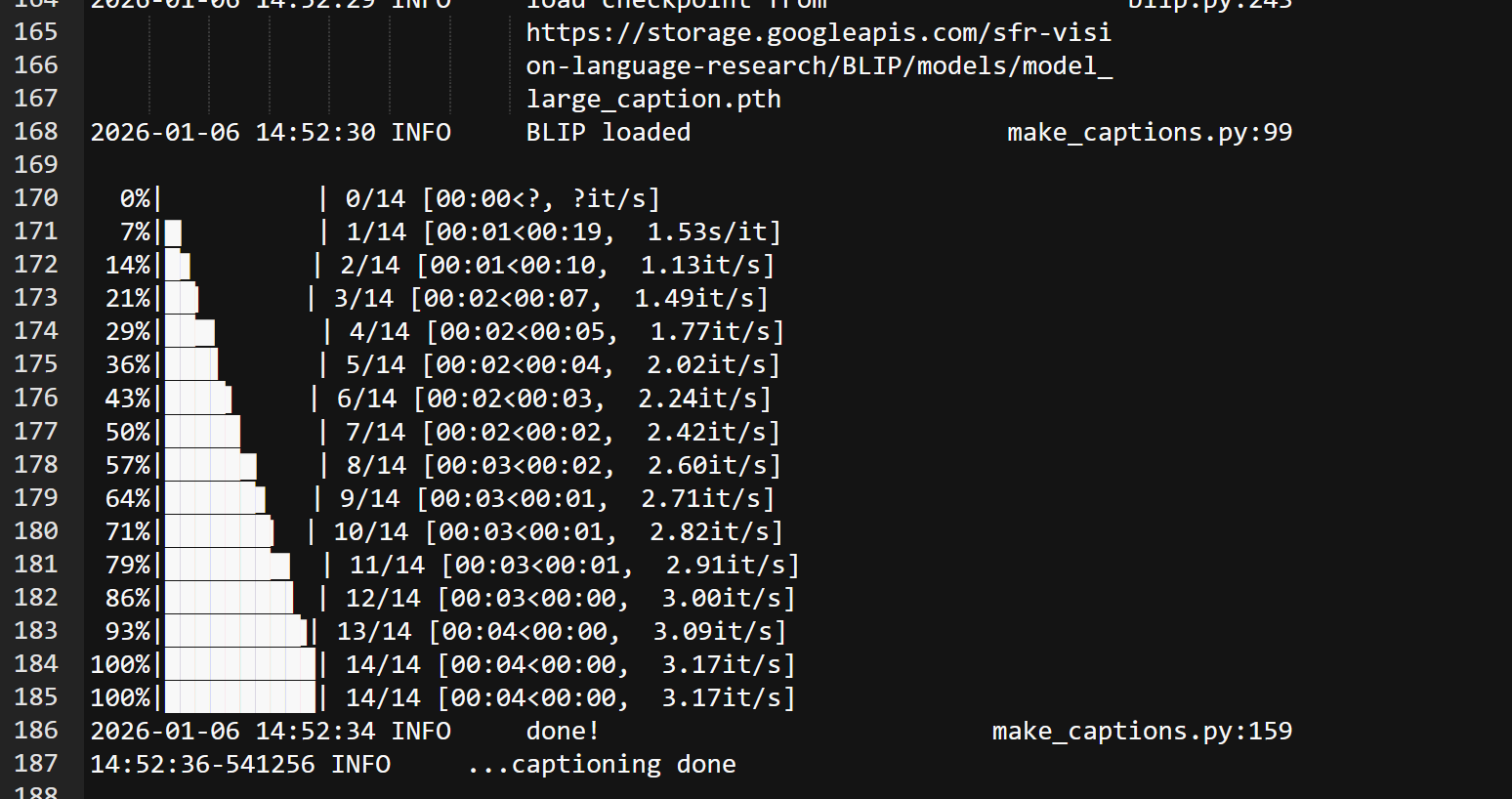 You can check your main Kohya Log to be sure the captioning has completed before continuing to the next step. If you need help on how to access logs you can use this tutorial. A common error is mistyping the folder path.