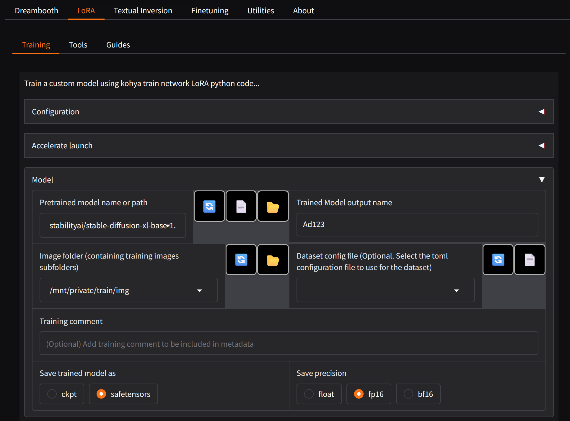 Saving your configuration allows you to reuse, modify, or rerun the training later without re-entering all settings. Always verify the config file path and confirm it exists before starting training.