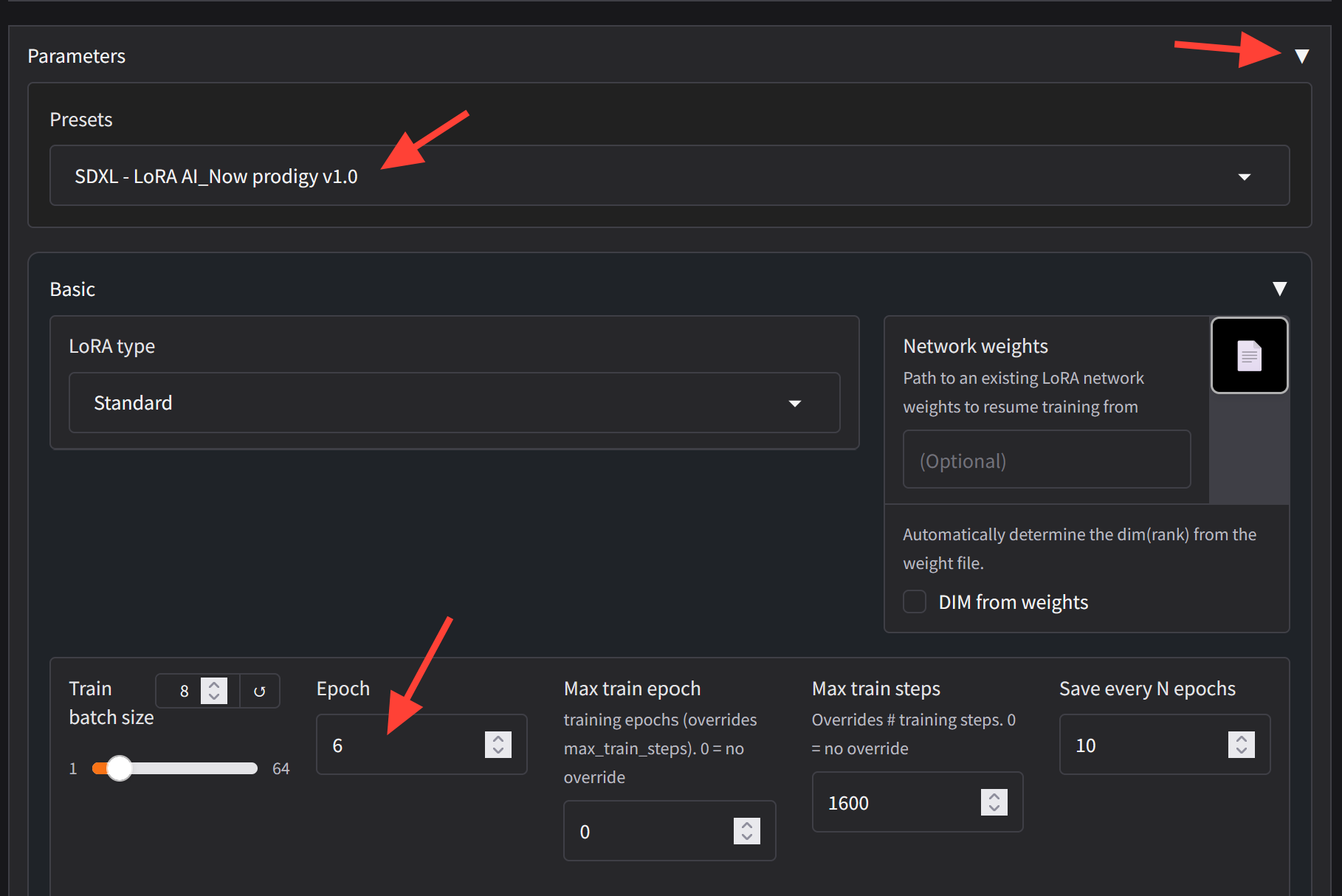 Presets: SDXL -Lora AI_Now prodigy v1.0 (Should fill out most of the information for us)