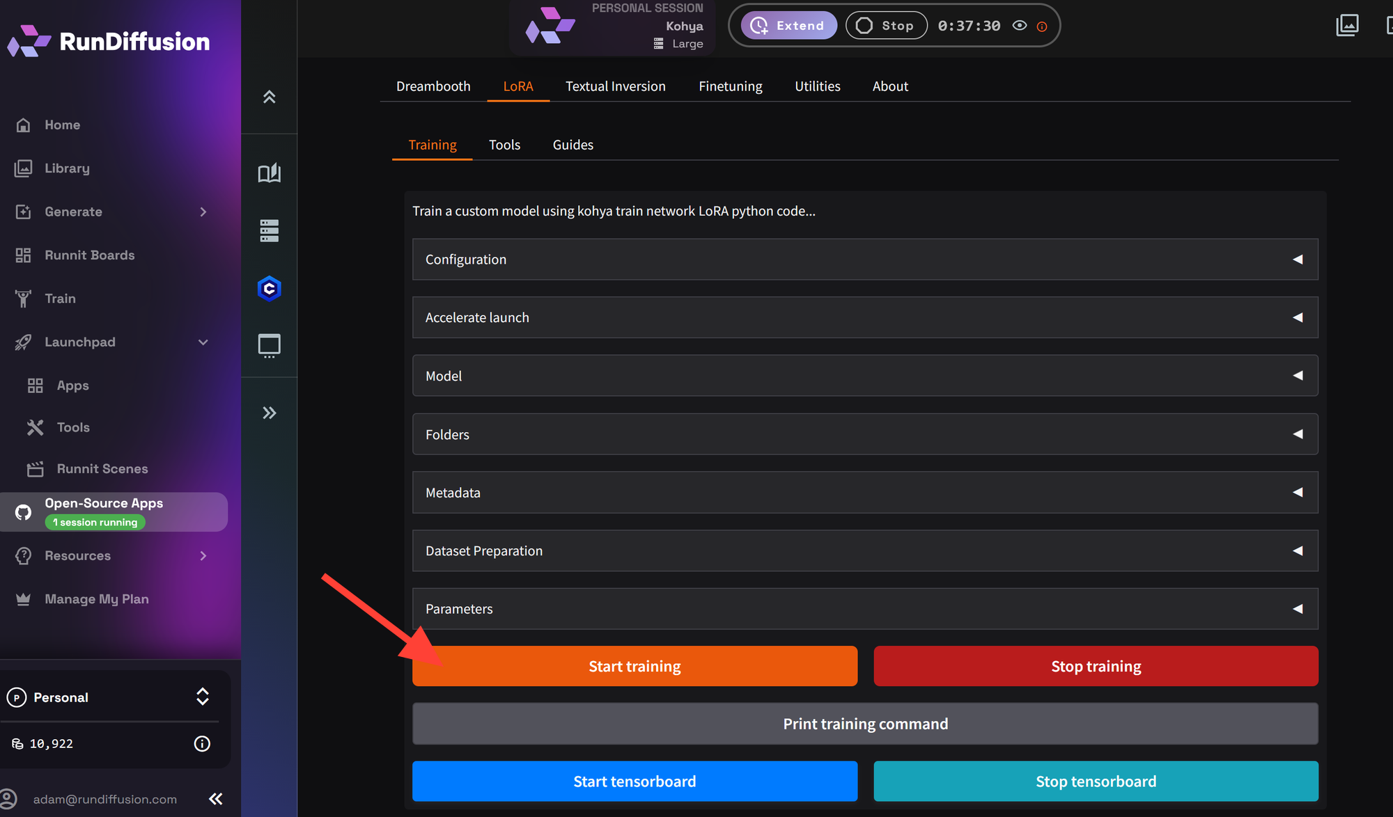 Update January 1, 2026: This tutorial is more advanced than the Basic LoRa Kohya and Flux Lora Tutorial which come with a premade configuration file. This tutorial walks you through more settings to get a better understanding of Kohya. If you are a beginner we recommend using the RunDiffusion Standard trainer instead of Kohya.