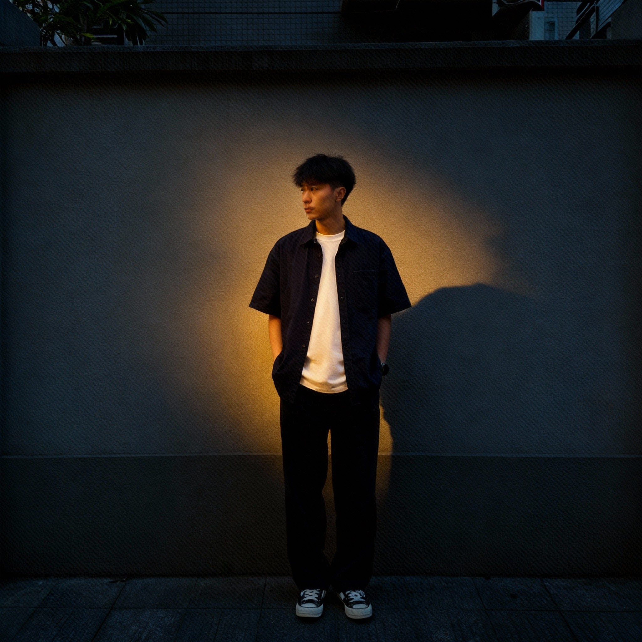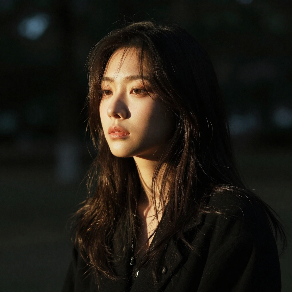 Prompt: Apply the dramatic lighting style from the female portrait reference image to the outdoor street scene.