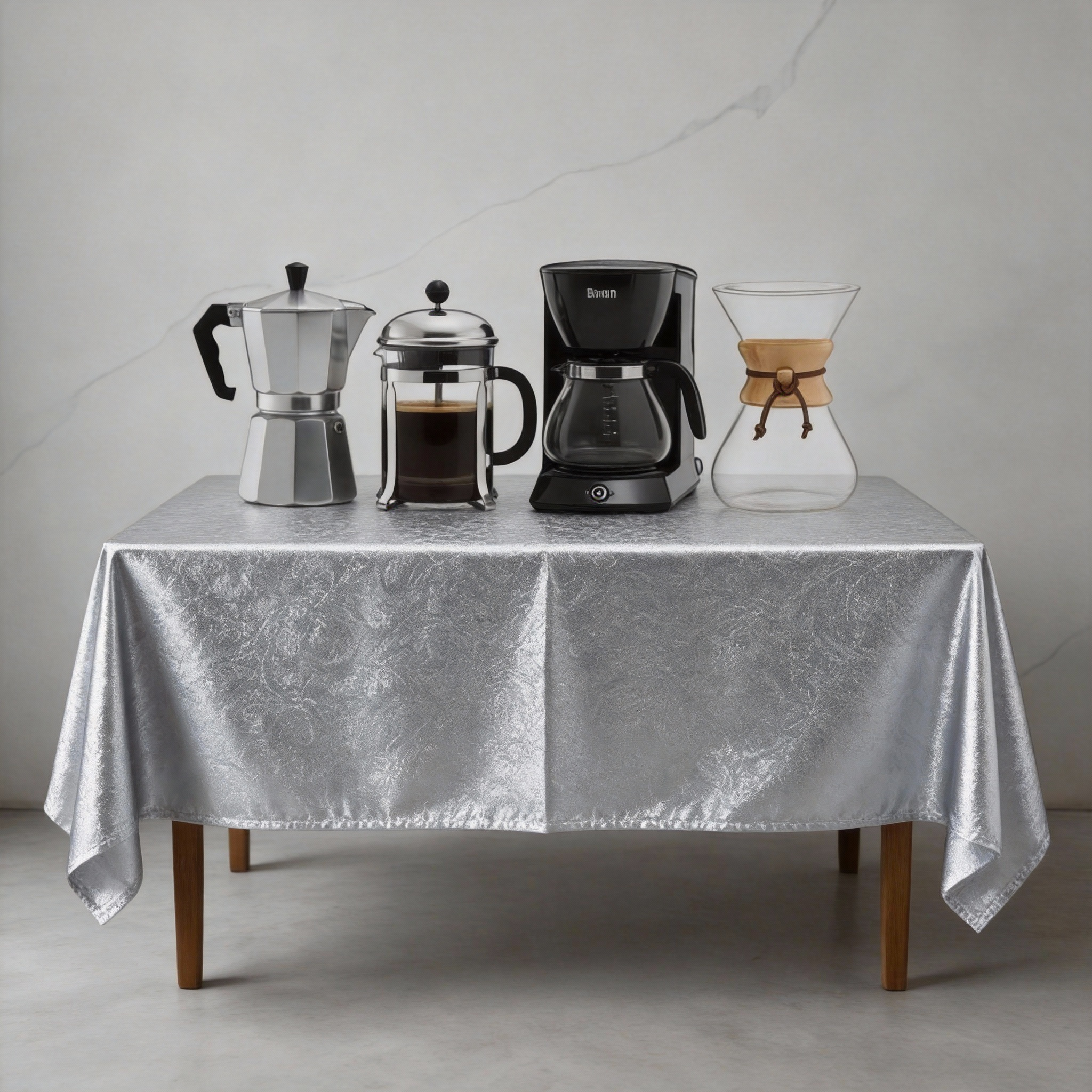 Prompt: Follow and remove the annotations marked on the image; Add the appliances in image 1 and the silver cloth from image 2 to the Image labeled 3.