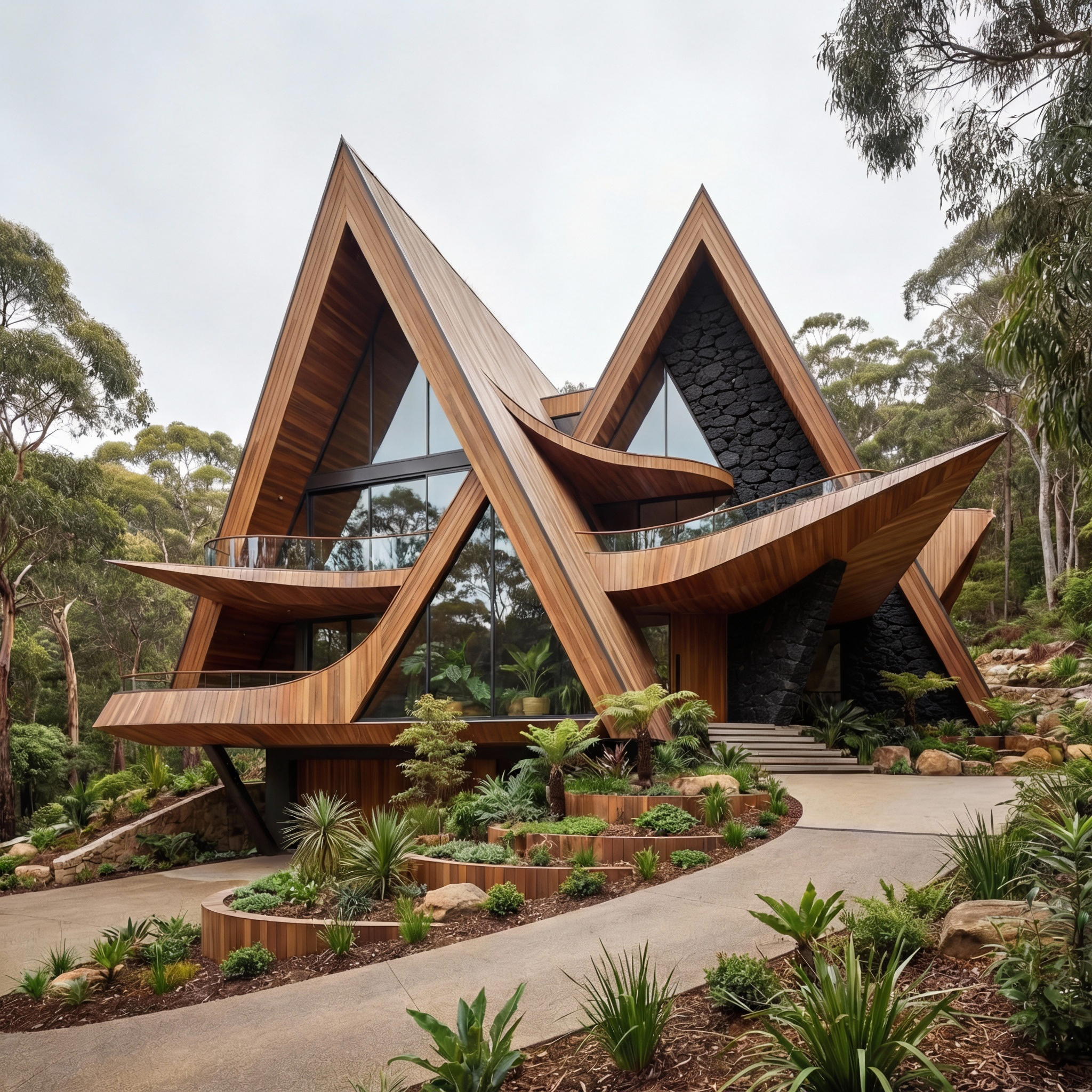 Prompt: Apply the black burned wood texture to the concrete building