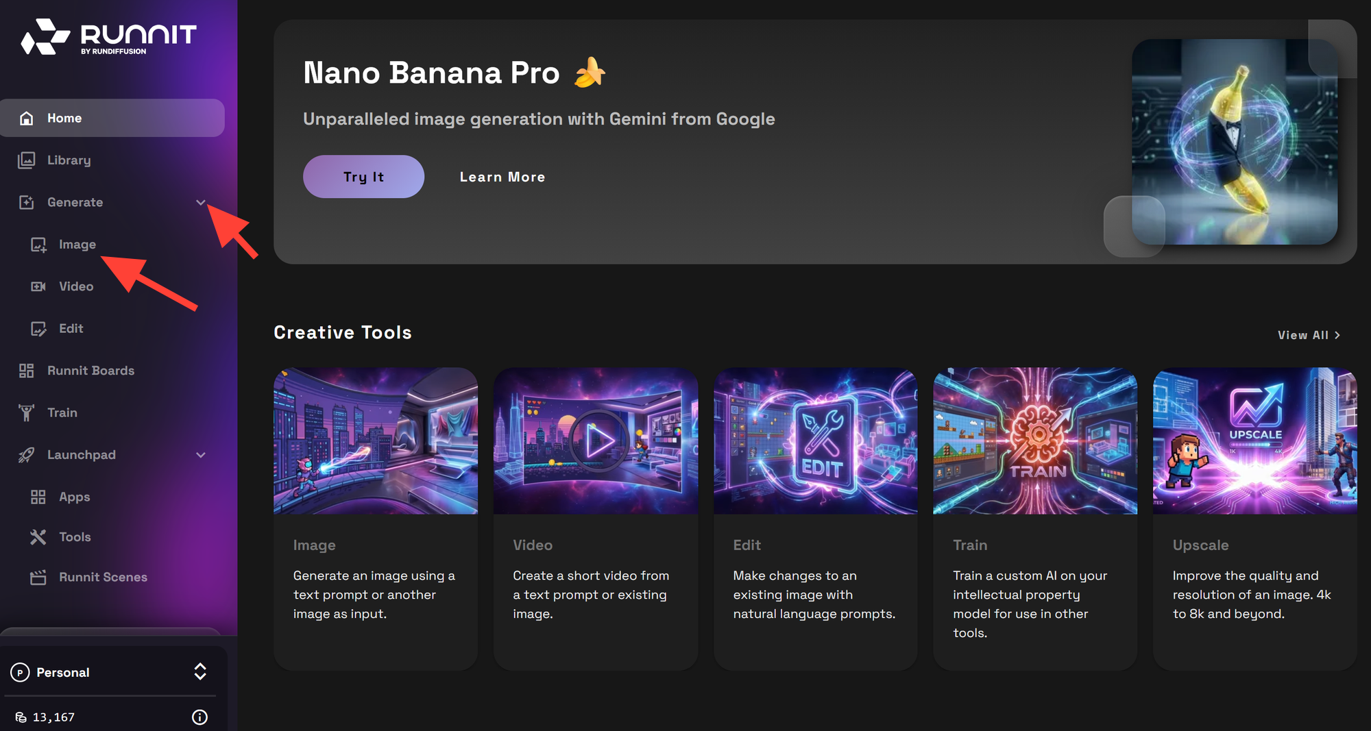 On the left Sidebar click on Generate and then Image.