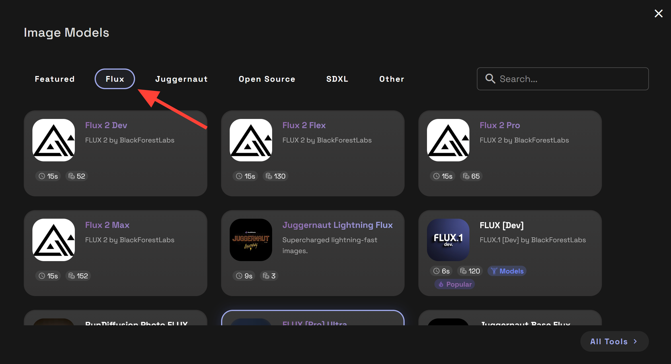 Click on the Flux tab at the top of the Image Models.