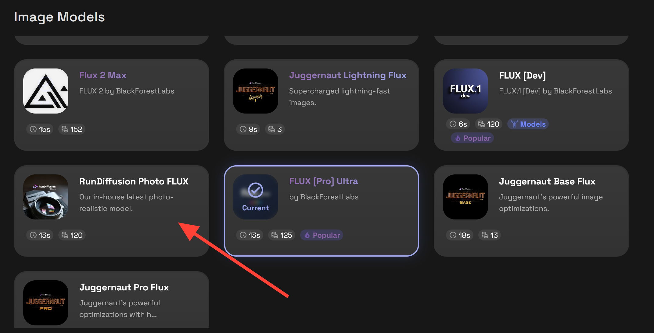 Scroll down and click on RunDiffusion Photo Flux.