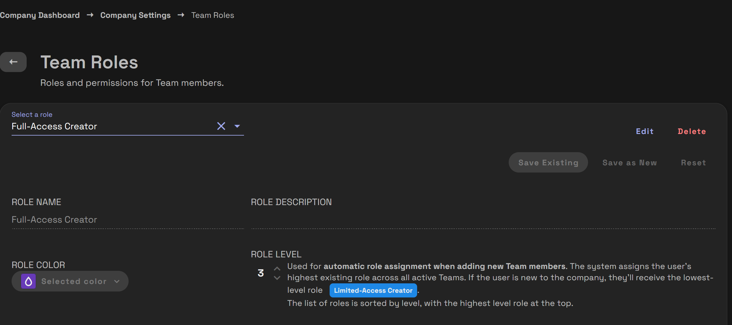 This article explains what each available option does based directly on the Team Roles interface, including role levels, token controls, generation permissions, and Open-Source access settings.