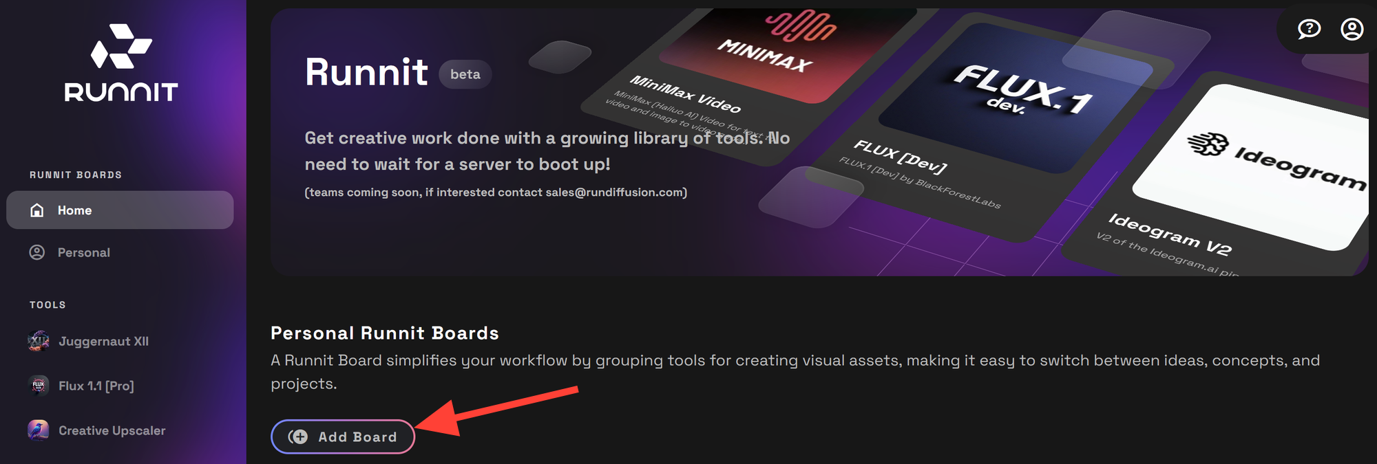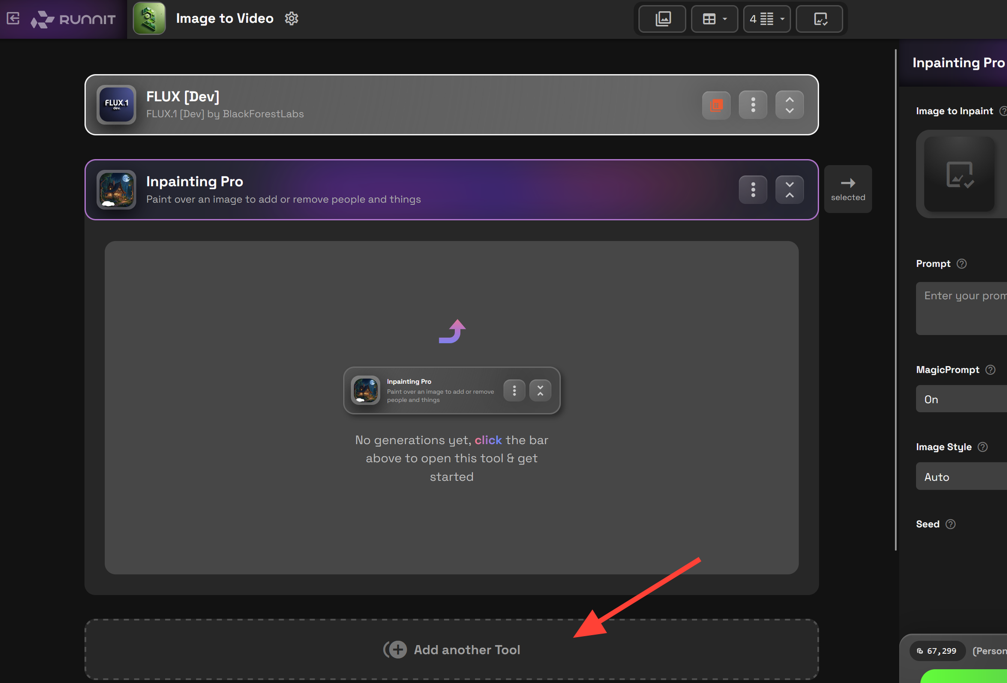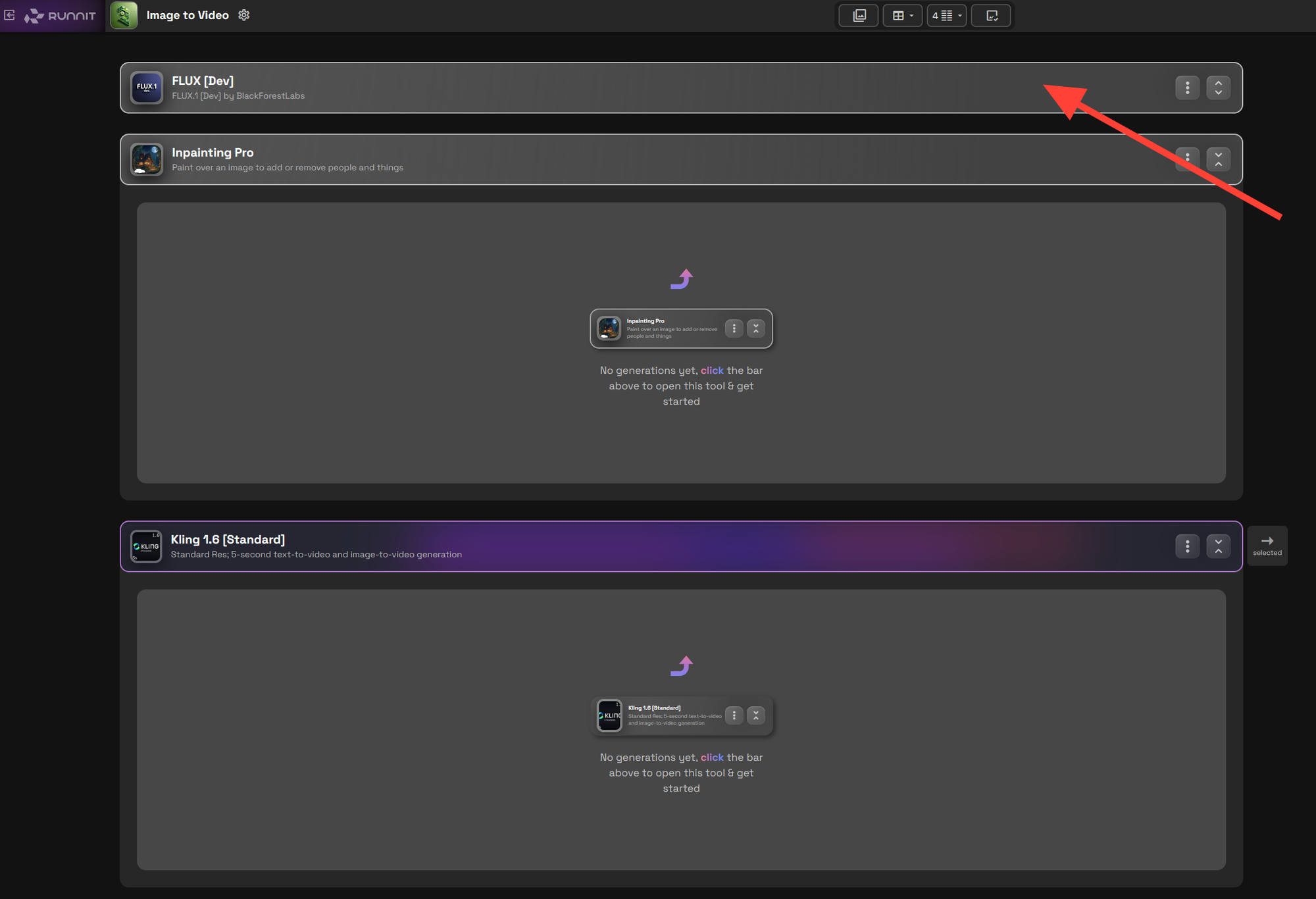 Runnit Boards in Runnit allow you to seamlessly move from image generation to inpainting and finally to video creation, all within a structured workflow. This guide will walk you through setting up a Runnit Board that will:
