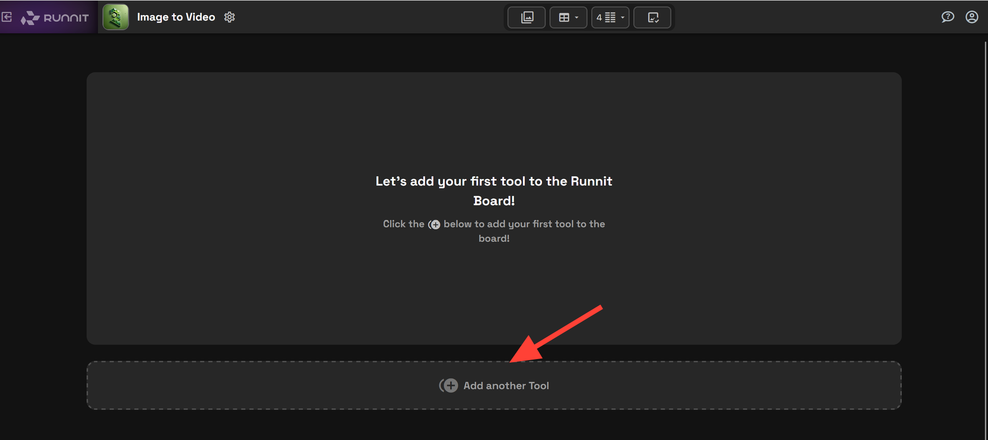 You now have a blank Runnit Board. To build your workflow, you’ll need to add tools. Click Add Another Tool to proceed.