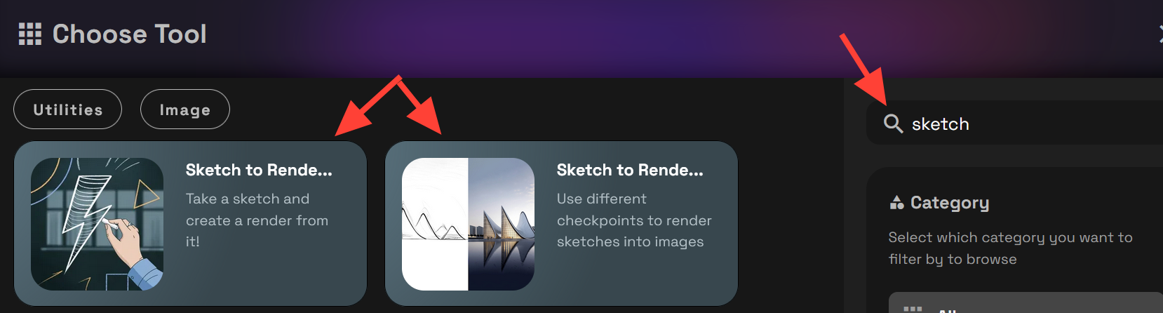 Search for Sketch to Render in the top-right search bar. Click to add the tool to your Runnit.