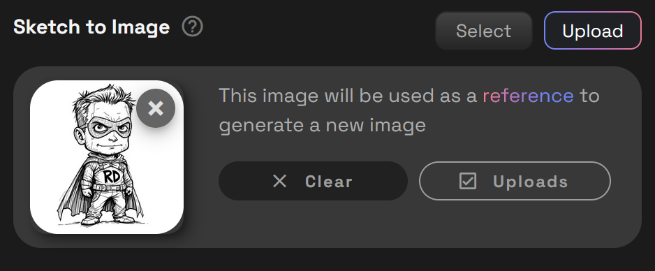Upload Your Sketch: Click Upload and select an image from your computer or choose one from your library.