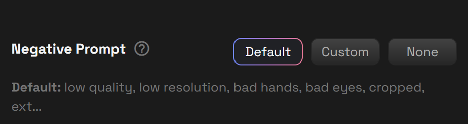 Custom vs. Default Negative Prompts: Stick with the default settings for now, or switch to custom if you want full control.