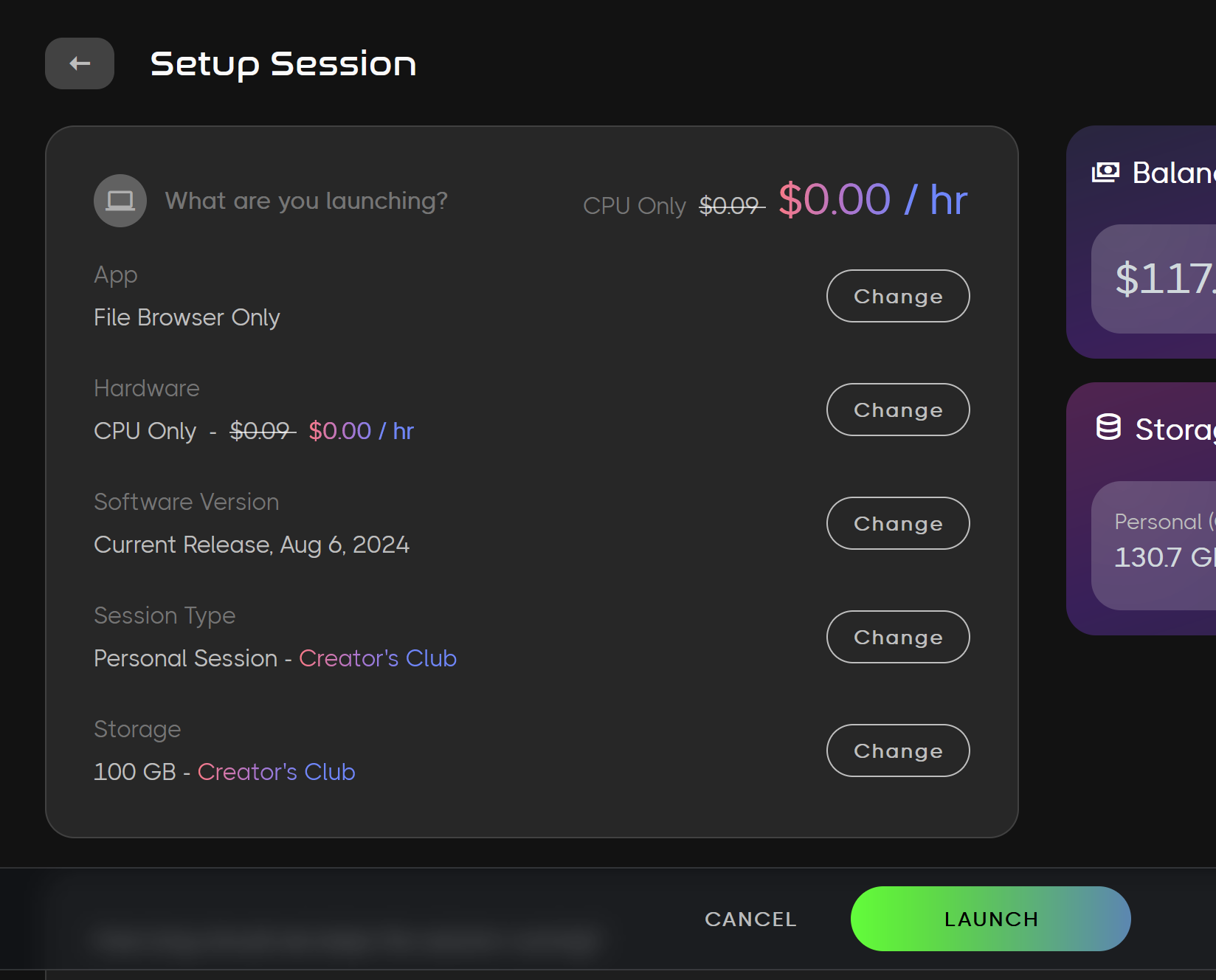 - Setup your Session and select Launch.
