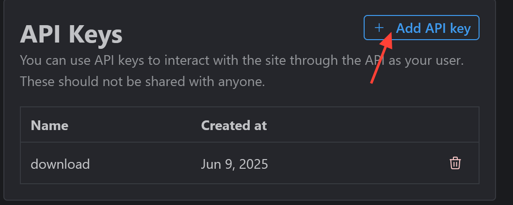 For this example we will use a model link from Civitai. You'll first want to generate an API key from civitai. To do that go to https://civitai.com/user/account and scroll down to API Keys and click Add API key.